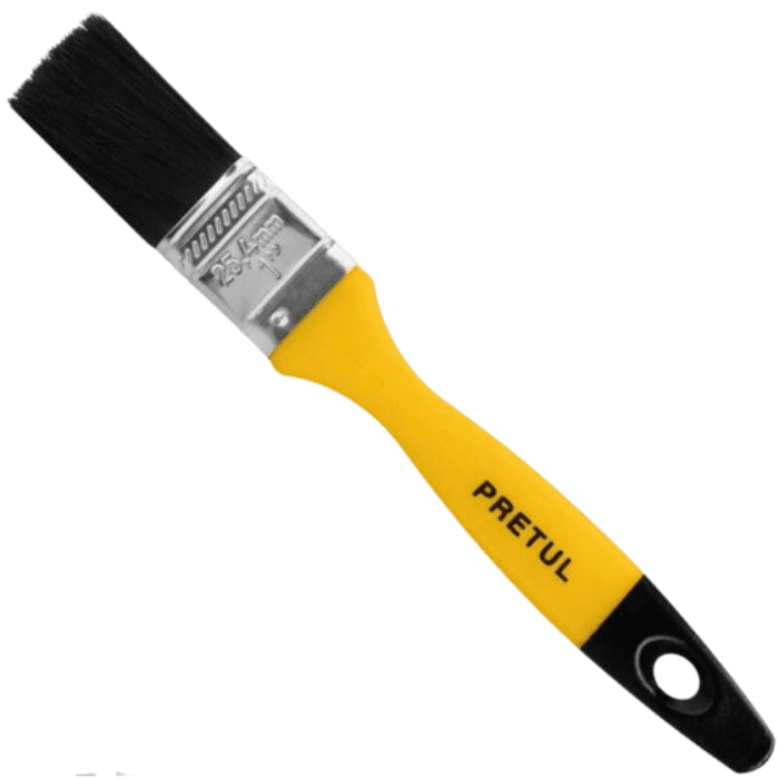 La brocha Pretul de 1″ con mango de plástico combina cerdas finas compuestas en un 80% sintéticas y 20% naturales que aseguran mayor retención de pintura y un acabado uniforme. Las cerdas están adheridas con resina epóxica al casquillo para evitar desprendimientos, mientras que su mango de polipropileno ligero proporciona un agarre cómodo y preciso. Es ideal para aplicar pintura, resina, pegamento, acetona y solventes en superficies de concreto, metal, estuco y madera.