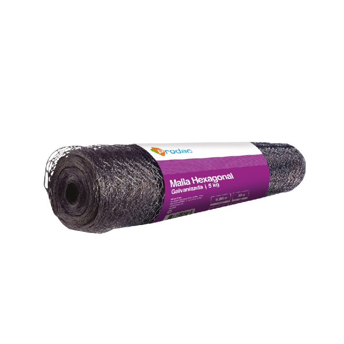Malla de celda hexagonal fabricada con alambre galvanizado, resistente a los efectos del medio ambiente. Usada en la construcción de granjas avícolas y jaulas de animales pequeños.